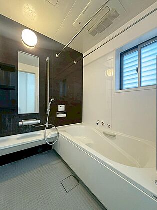 一日の疲れを癒すバスルームは、ゆっくりと足を伸ばして入浴できる、ゆとりある一坪タイプの浴槽です。(2025年10月)撮影