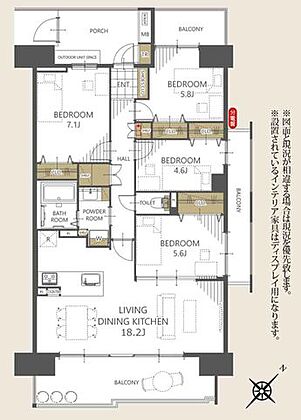 【間取り図】4LDK、専有面積89.56m2、バルコニー面積25.35m2