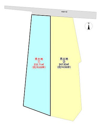 | 土地面積/坪(坪単価) | 233.71m2/70.82坪(9.80万円) | 代表的な接道 | 一方 ※詳細は備考欄をご確認ください |