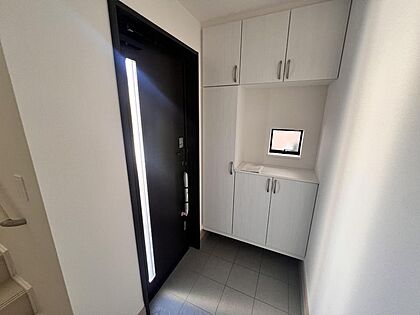 【モデルハウス】玄関に収納付き♪お子様だっこしたままでも開けられるスマートキー♪