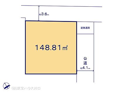 | 土地面積/坪(坪単価) | 148.81m2(実測)/45.09坪(42.40万円) | 代表的な接道 | 二方 ※詳細は備考欄をご確認ください |