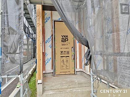 玄関にはドアが付いていました。室内では壁紙、床材、設備機器取り付けなど、室内の細かい作業を行っています。