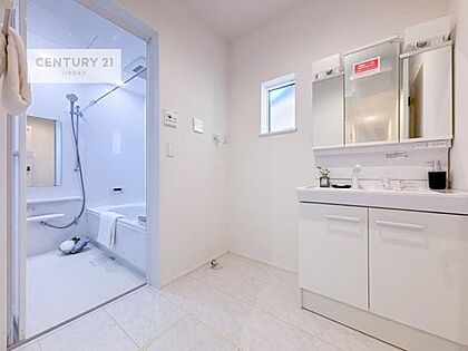 洗面台のボウルが深く床に水が跳ねにくいです!それにお掃除がしやすい使い勝手の良い白を基調とした清潔感のある洗面台で気持ちよくお使いいただけます!(同仕様)