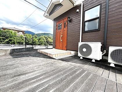 周辺のお家ともゆとりある距離感で解放感あり♪玄関側から広がるウッドデッキが魅力です♪