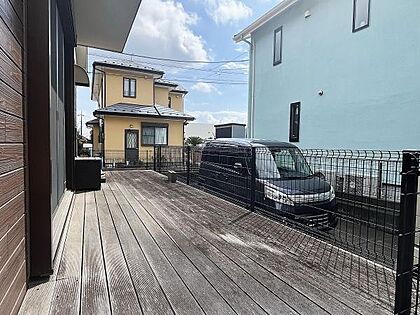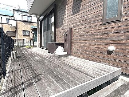 日当たりの良いウッドデッキ!水栓もついています!BBQやお子様の遊び場などご家族様の趣味のスペースに♪