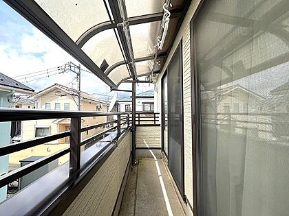 2部屋から行き来できる便利な続きバルコニー!前面棟が離れているため明るい日差しが目いっぱい差し込みます♪屋根付きなので雨の日でも安心ですね♪