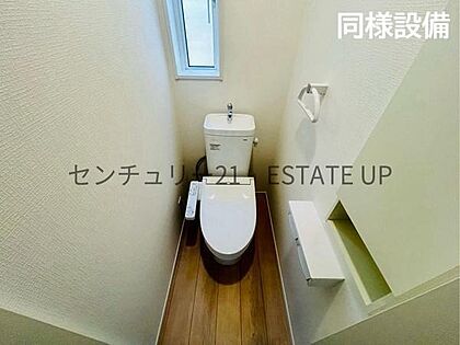 【同様設備 トイレ】温水洗浄便座付きのトイレです。床と壁もシックなつくりです。