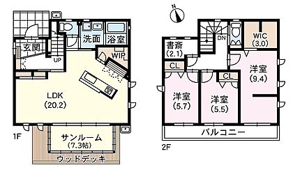 南面バルコニー 2階の洋室は全室バルコニーに面しています
