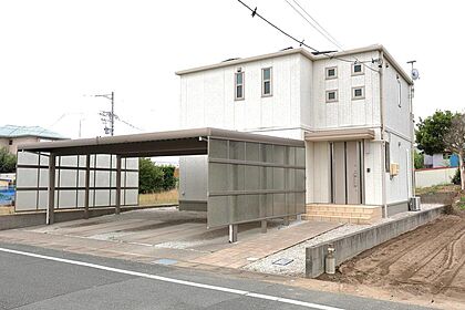 北側から撮影 駐車場3台可(うち2台分カーポート) 太陽光パネル設置済み