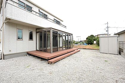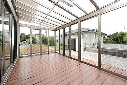 南庭 リビング横のサンルーム(ウッドデッキ)