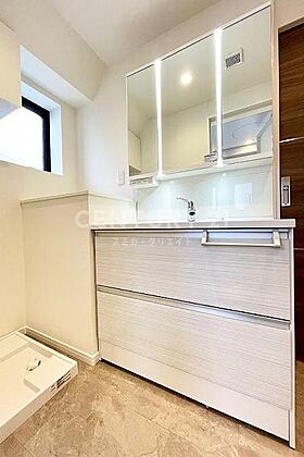 洗面化粧台/三面鏡裏収納・下部収納付きですので嵩張る小物類をすっきりと収納できます。