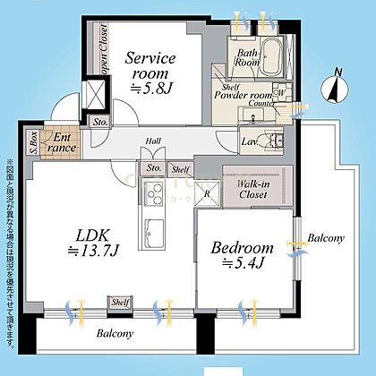 間取図/6階最上階南東角住戸1SLDK+Wic+2面バルコニー、採光・通風・眺望良好!
