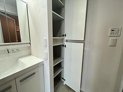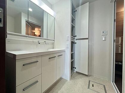 〜脱衣所〜 3面鏡&シャワーヘッドの使い勝手が良い洗面化粧台です。