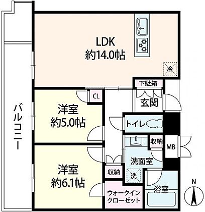 〜間取り図〜 専有面積:60.05平米のゆとりある空間は全居室が西面バルコニーに面しております。