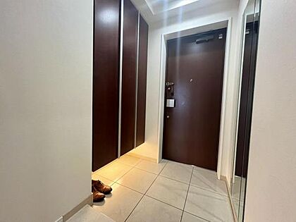 〜玄関〜 姿見が設置された大容量のシューズボックスが完備された玄関部分です。