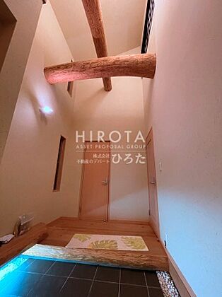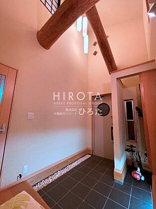 天井が高く開放感があり、玄関を広く見せる効果もあります。