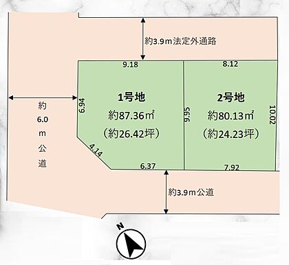 | 土地面積/坪(坪単価) | 80.13m2(実測)/24.28坪(271.70万円) | 代表的な接道 | 一方 南西 3.9m ※詳細は備考欄をご確認ください |