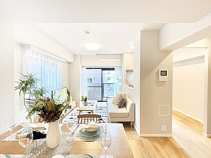 明るい陽光が注ぎ、寛ぎの雰囲気に満たされるダイニング。