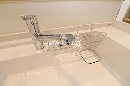【同社施工例】キッチンは使いやすいシステムキッチンです。浄水器一体型の水栓も標準装備しています。