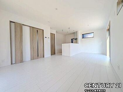15.6帖のリビングです♪カウンターキッチンからリビングにいるご家族やお子様の様子が見えるので、コミュニケーションがとりながら、ご家族の大切な時間を共有できるリビングスペースです♪