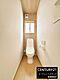 窓付きで換気がしやすく清潔感のあるトイレです。白を基調とした内装で明るい印象です。シンプルなデザインで使いやすさが感じられます。床と天井の木目が温もりを演出しています。