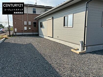 広々とした庭スペースはお手入れが簡単な砂利敷きとなっています。日当たりが良好で開放感のある空間です。建物脇のスペースも有効活用できます。便利な立地に位置し快適な生活が望めます。