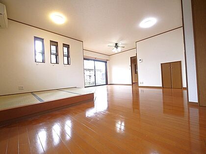小上がりのタタミコーナー くつろぎながらリビングやキッチンにるご家族とコミュニケーションがとれます