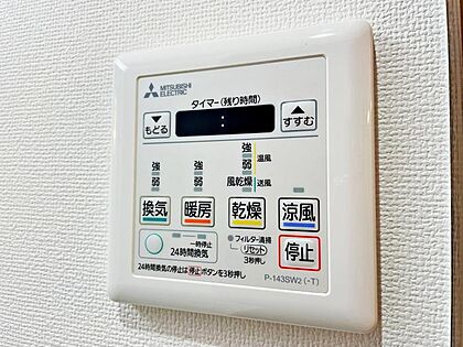 【浴室乾燥・暖房機】雨の日も室内干しできます。