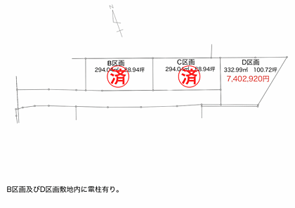 | その他 | ●公営水道 ●下水 ●建築条件なし ●所有権 ●売主・代理 ●上下水道 ●整形地 ●平坦地 ●更地 |