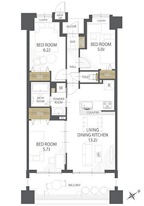 | 間取り | 3LDK | 専有面積 | 63.50m2(壁芯) |