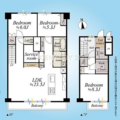間取図/6階-7階部分メゾネットタイプ3SLDK+Wic+Sic+専用使用権付駐車場(無償・車種による)専有面積10m2以上、スケルトンからのフルリノベーション済!前面に高い建物がなく採光・通風良好!