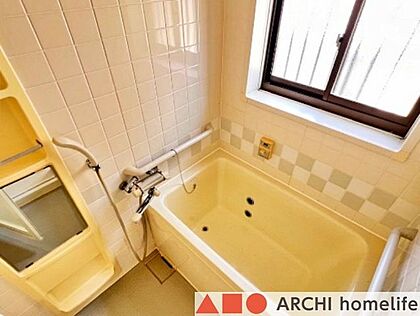 窓のある浴室。浴槽にお湯を溜めてゆっくりと入浴していただけます。