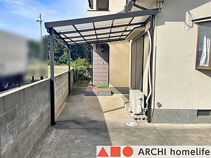 サイクルポートに自転車やバイクを置けますので、雨風を凌げます。