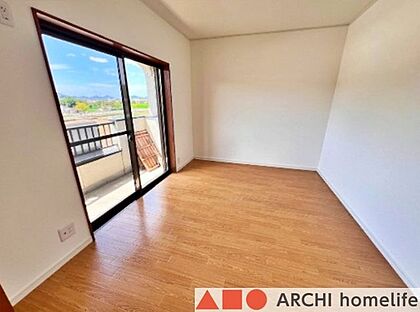 1Fの6帖洋室です。南東角部屋なので、温かな陽射しが入ります。