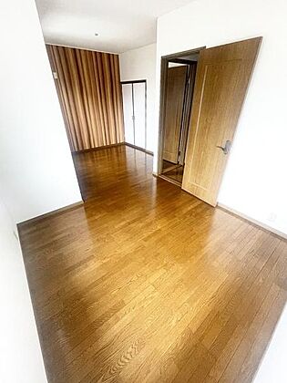 •  二面採光の洋室は明るさがしっかり確保されています。ナチュラルな色合いのフローリングが印象的です。シンプルな内装でさまざまなインテリアにも対応できます。