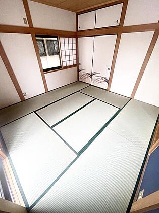 •  畳が丁寧に敷かれた和室です。窓からの採光もあり開放感を感じられます。ふすまのデザインがさりげなくアクセントとなっています。