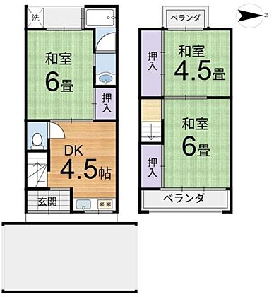 3DK 1階25.67平米 2階24.95平米 延床面積50.62平米 東向き♪
