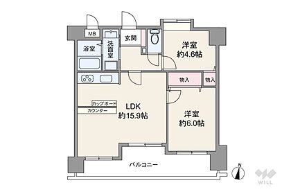 間取り 2LDK 専有面積 54.44m2(壁芯)
