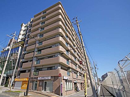 •  甲南グランヴェルジュ灘の外観(南西側から)です。JR灘駅から徒歩1分にあるマンション。南側にJR神戸線が走っています!