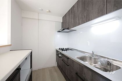 •  キッチンです。2025年6月にリフォーム済み!カップボード付きで、収納が豊富なプラン。[2025年10月23日撮影]