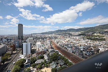 バルコニーからの眺め(南西方向)です。神戸の街・海・山を望めます![2025年10月9日撮影]