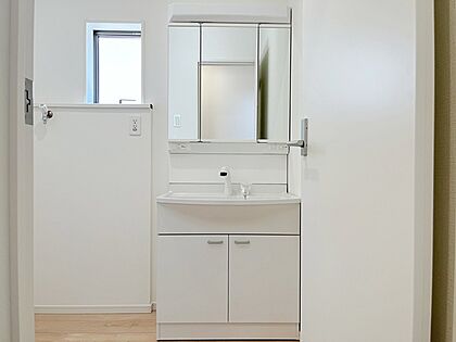 【施工例】洗髪・洗面・化粧などができる機能と収納スペースを一体化した洗面台です。