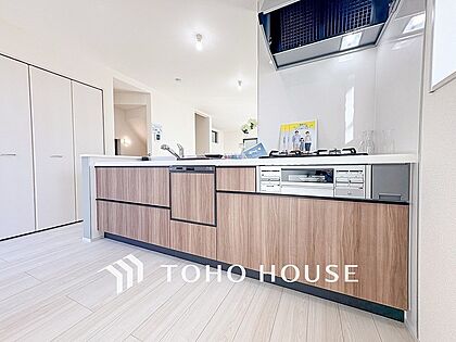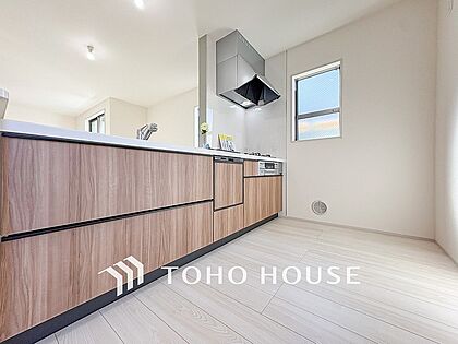 お手入れのしやすいすっきりしたシステムキッチンを採用しました。