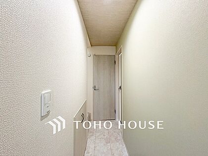 上質感漂う廊下。居住者の帰り、訪れる方を優しく迎え安らぎに満ちた生活空間を予感させます。