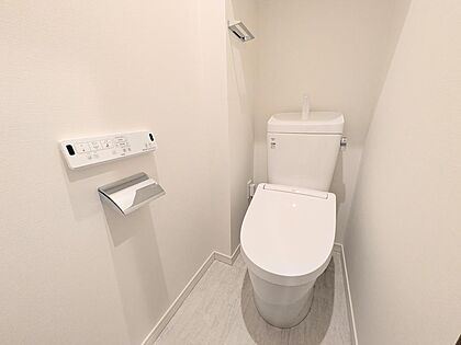 トイレは温水洗浄便座を新しく交換済み。清潔感があり、快適にお使いいただけます。毎日の暮らしをより心地よくする、うれしいリフォームポイントです。