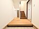 木の温もりが感じられる明るい玄関。ゆとりある土間スペースが家族や来客を心地よく迎え入れます。