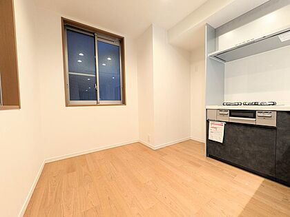 キッチン背面にはゆとりある作業スペースを確保。収納や家電配置にも便利な機能的レイアウトです。