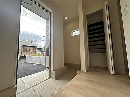 【玄関】玄関に収納付き♪お子様だっこしたままでも開けられるスマートキー♪