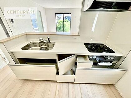 収納スペースが豊富で、調理スペースがスッキリと片付きひろ〜く活用できます!快適に作業ができます!毎日の料理が捗ります!