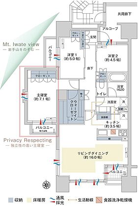 | 位置 | ●2階以上 ●角部屋 ●南向き |
